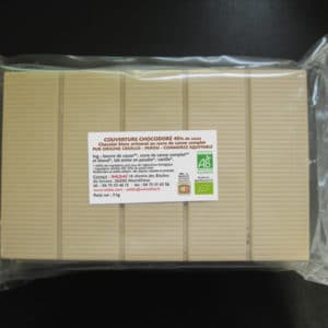 Chocolat au lait de couverture, 46 % de cacao sans lécithine, bio, paquet de 3 x 1 kg